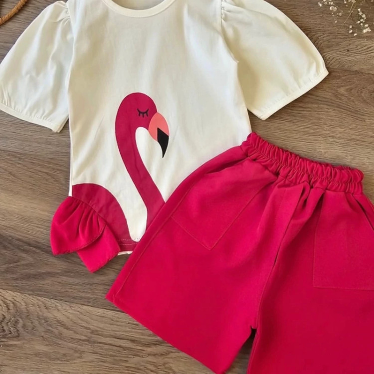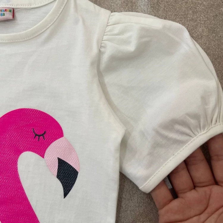 ست فلامینگو با کیفیت عالی جزئیاتشو ببین فقط آستین پفی و اون دم فلامینگو واقعا خاصش کرده🥲